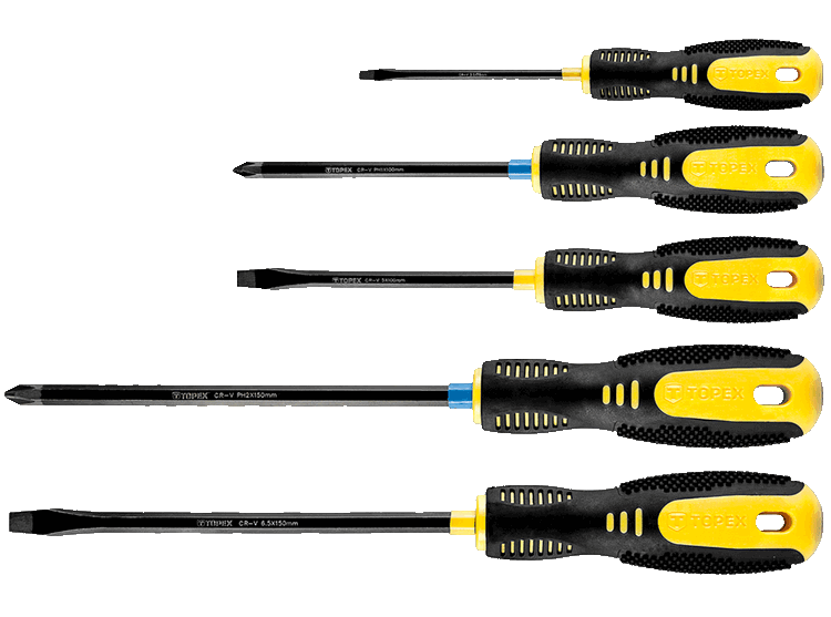 - A TOPEX csavarhúzó készlet kiválóan alkalmas szerelési, barkácsolási munkákhoz.
